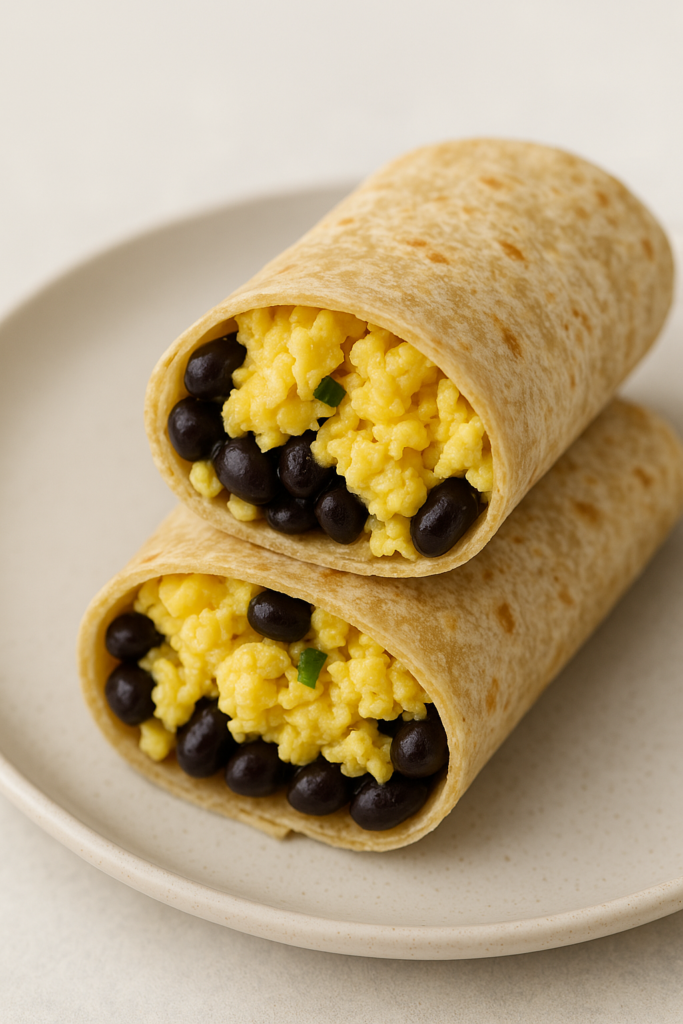 Looking for a nutritious and tasty breakfast wrap? The Black Bean & Scrambled Egg Wrap is a great pick. It mixes scrambled eggs with black beans for a filling start to your day. Black beans bring fiber and nutrients, making them a healthy choice.