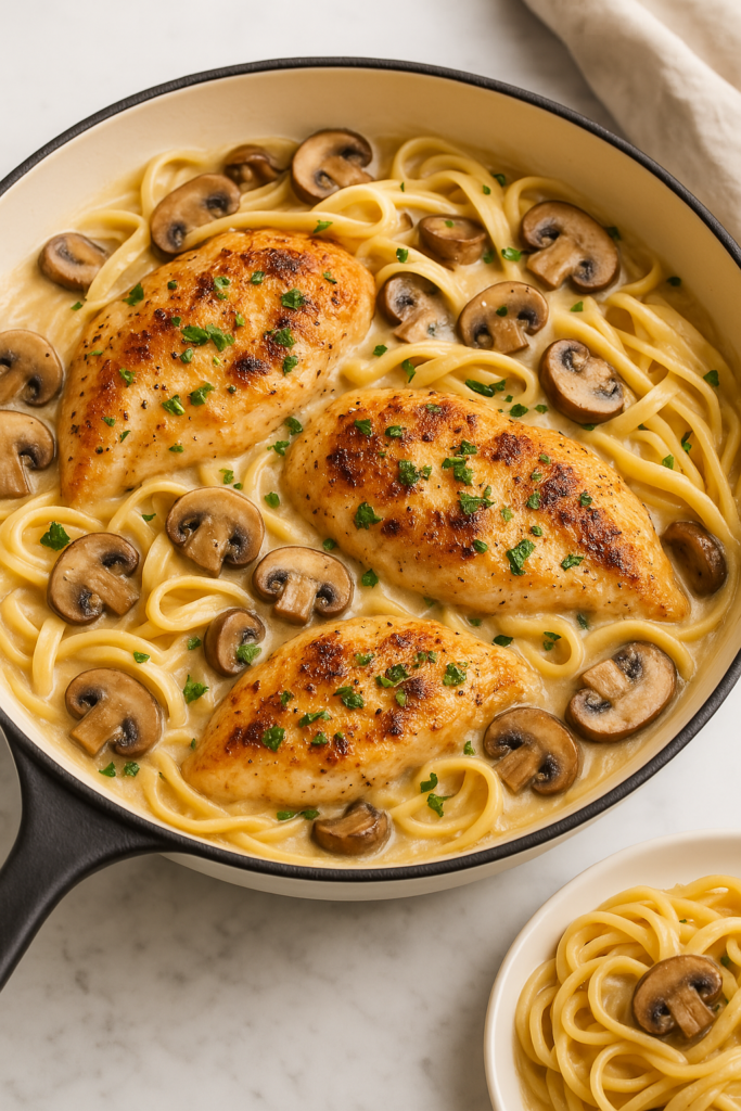 One-Pot Creamy Mushroom Chicken Pasta