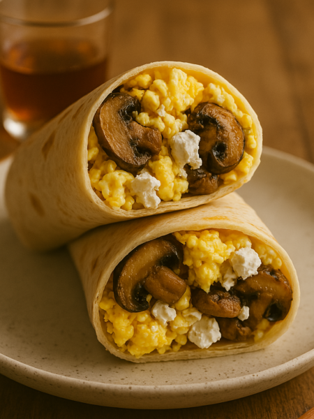 A close-up shot of freshly prepared Mexican breakfast tacos, with soft corn tortillas filled with fluffy scrambled eggs, crumbled chorizo sausage, diced tomatoes, and diced onions. The tacos are garnished with a sprinkle of chopped cilantro and a squeeze of fresh lime juice, giving them a vibrant, authentic appearance. The lighting is warm and natural, creating a cozy, inviting atmosphere. The tacos are arranged on a rustic wooden surface, with a minimalist background allowing the dish to be the focal point.