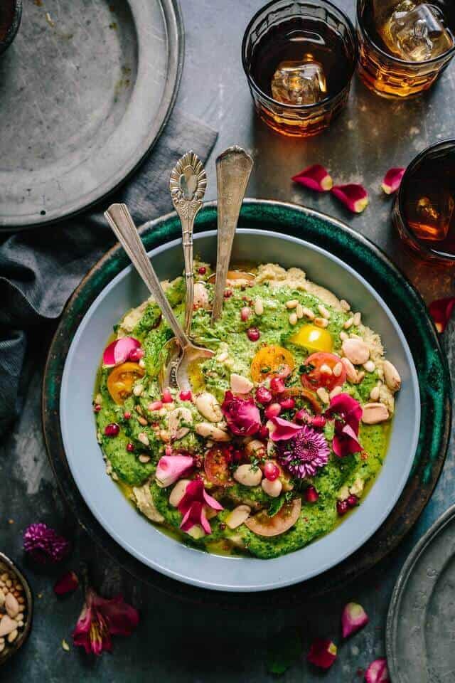 Bean salad is a common cold salad composed of various cooked beans – green beans, yellow wax beans, garbanzo beans, kidney beans – and typically fresh raw onions, peppers, and/or other vegetables, tossed in a vinaigrette or vinegar and characteristically sweetened with sugar. It can also be prepared as a pickled dish. Bean salad is a popular choice for home canning. Salads prepared with this method should be used within a year for best quality.