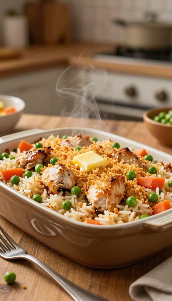 This Dump-and-Bake Chicken Rice Casserole is classic comfort food made unbelievably easy. Uncooked rice, tender chicken, and a creamy sauce bake together in one dish—no boiling, no browning, no fuss. It’s hearty, cozy, and perfect for busy weeknights or make-ahead dinners the whole family loves.