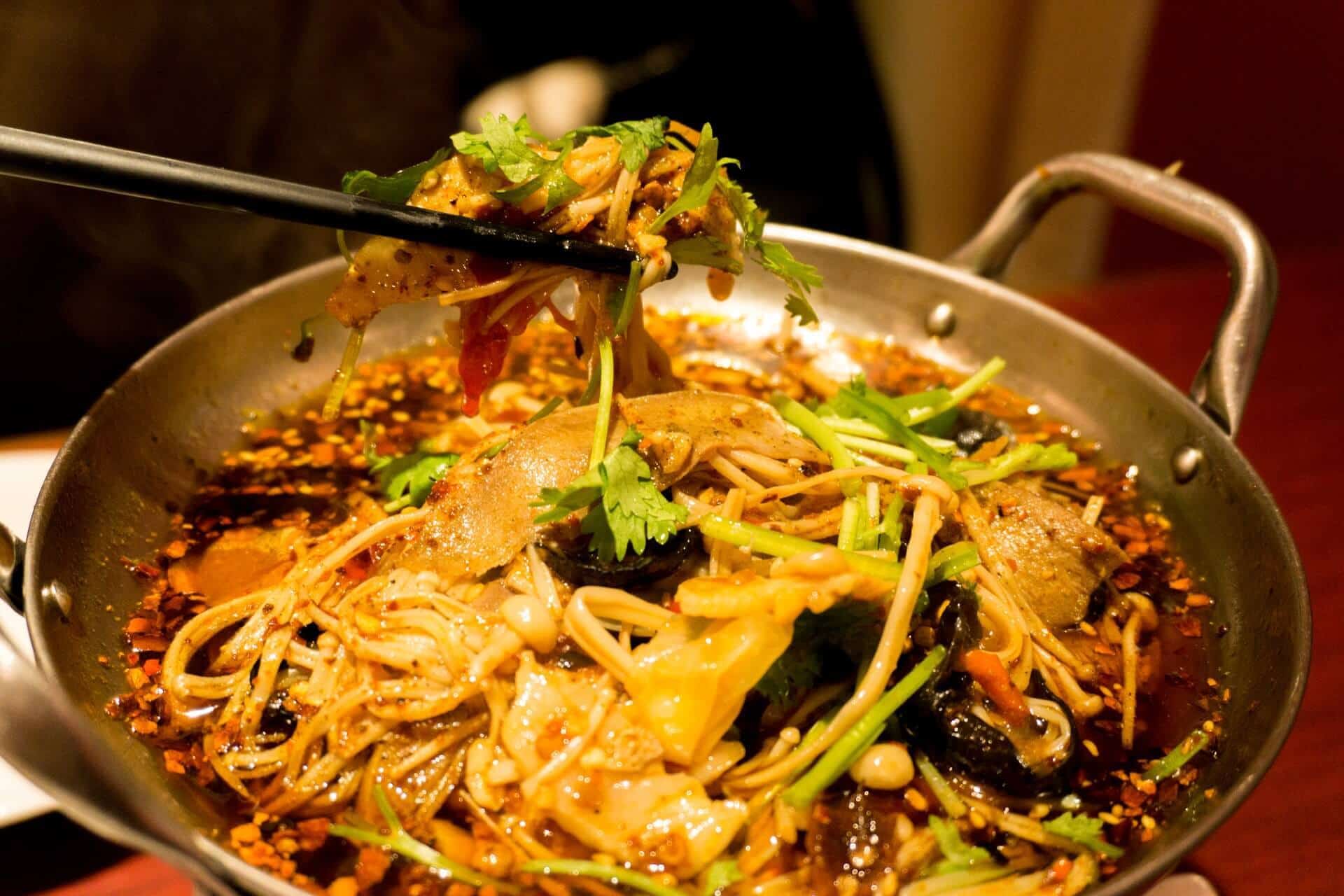Pad thai is a stir-fried rice noodle dish commonly served as a street food and at most restaurants in Thailand as part of the country’s cuisine. It is typically made with rice noodles, chicken, beef or tofu, peanuts, a scrambled egg, and bean sprouts, among other vegetables. The ingredients are sautéed together in a wok, which creates even heat distribution. Once the dish is completed it is tossed in pad thai sauce, which gives the dish its signature tangy salty flavor with a hint of sweetness.